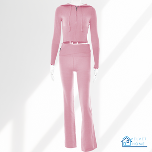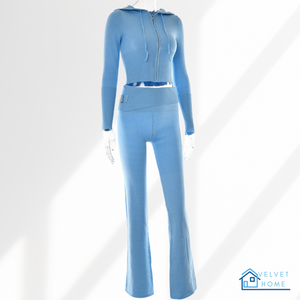 ✔ Trendy cropped hoodie and flared pants that gives you a fresh, youthful vibe